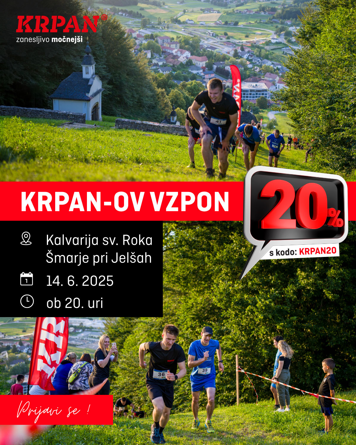 KRPAN ponuja 20% popusta za prijave na Krpanov vzpon na sv. Rok. Prijavite se lahko še do 11. junija 2025.